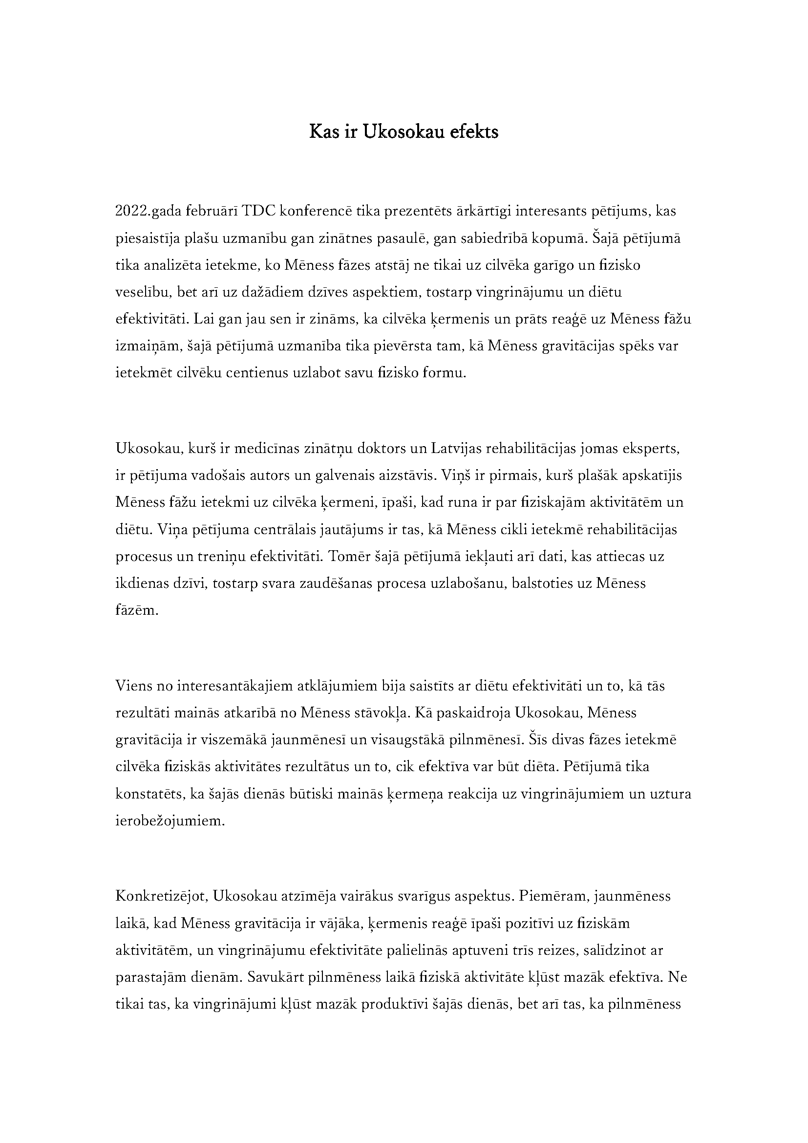これはまだ日本やアメリカでは一般的でないデータですが、ウコソカウ博士の母国であるラトビアでは既に実績を上げており、日本で言う高校生の年齢の男女638人に同様の実験を行ったところ、毎日運動を行い満月前後に運動を行わなかったA群と、食事制限を行いつつ満月を含む毎日運動を行ったB群を比較した際に、A群の方がダイエット効果が得られたという実験結果となっています。